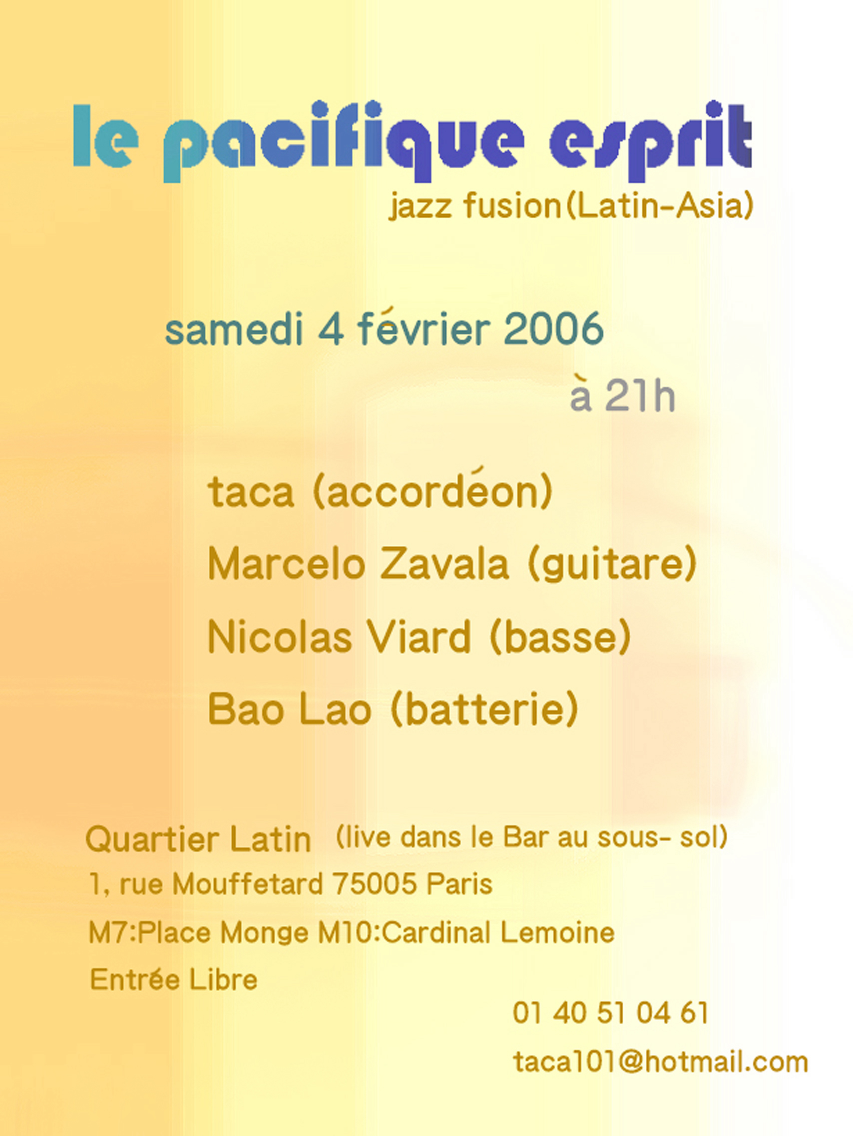 今年初のl.p.eのライブです。パリ5区、ムフタール通りのイタリアンレストランでやります。