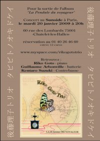 パリで一番有名なジャズクラブの一つ”SUNSIDE”で友人ピアニスト、後藤リコちゃんのトリオがライブします。ベースは自分のトリオでもお世話になってる、スズキケンタローさん、ドラムは、ギオム・アルボンビル。CD発売記念のライブとなってます。